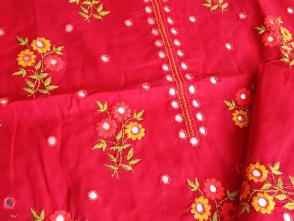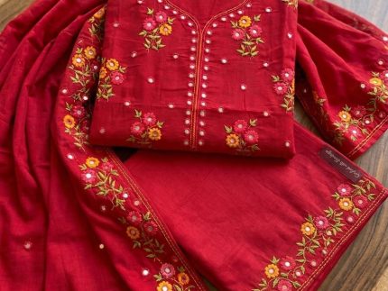 সুতি কাপড়ে এমব্রয়ডারি রোলেক্স কাজ করা থ্রি পিচ