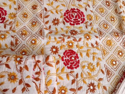 সুতি কাপড়ে এমব্রয়ডারি রোলেক্স কাজ করা থ্রি পিচ