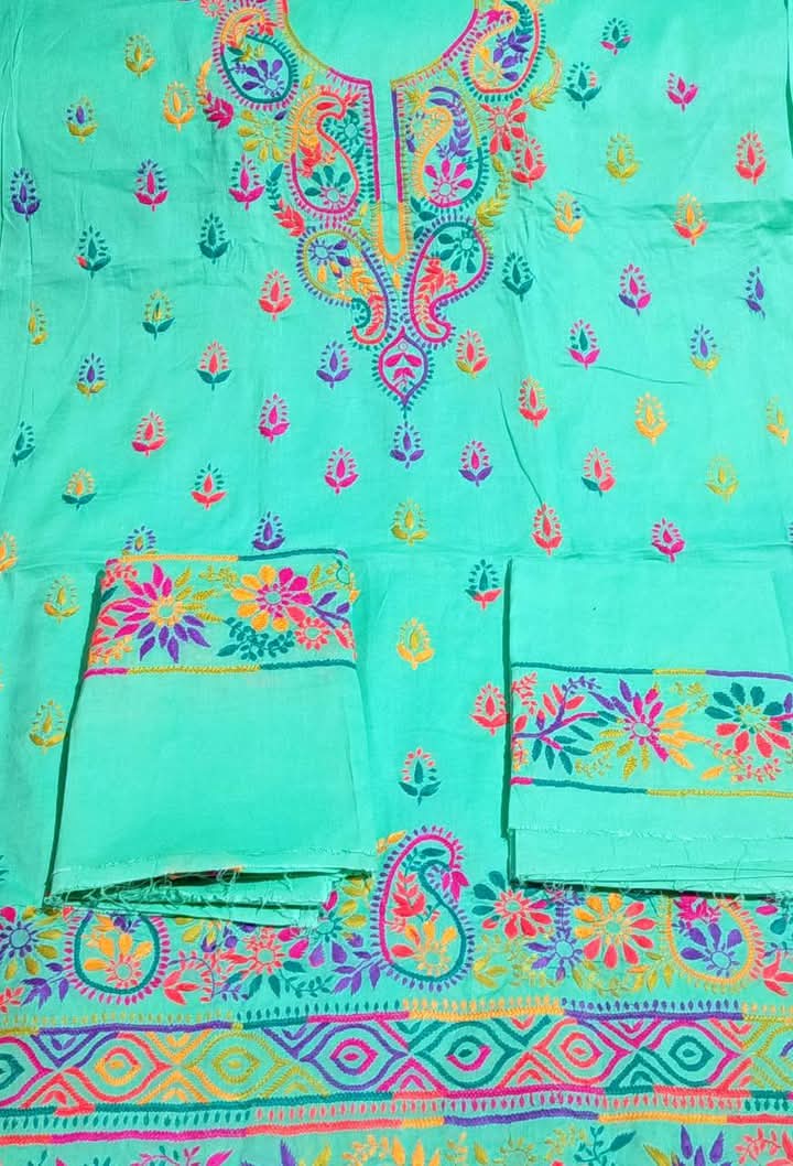 আকর্ষণীয় ডিজাইনের এই হাতের কাজের অরবিট থ্রি পিসটি স্টাইল ও আরামের একটি সুন্দর সমন্বয়। জামার গলা ও নিচের অংশে সূক্ষ্ম রঙিন সুতা দিয়ে অরবিট স্টাইলের হ্যান্ড এমব্রয়ডারি করা হয়েছে, যা ড্রেসটিকে আরও নান্দনিক ও ইউনিক করে তুলেছে। নরম ও আরামদায়ক কাপড় হওয়ায় এটি দৈনন্দিন ব্যবহার, আড্ডা বা হালকা অনুষ্ঠানের জন্য উপযুক্ত।