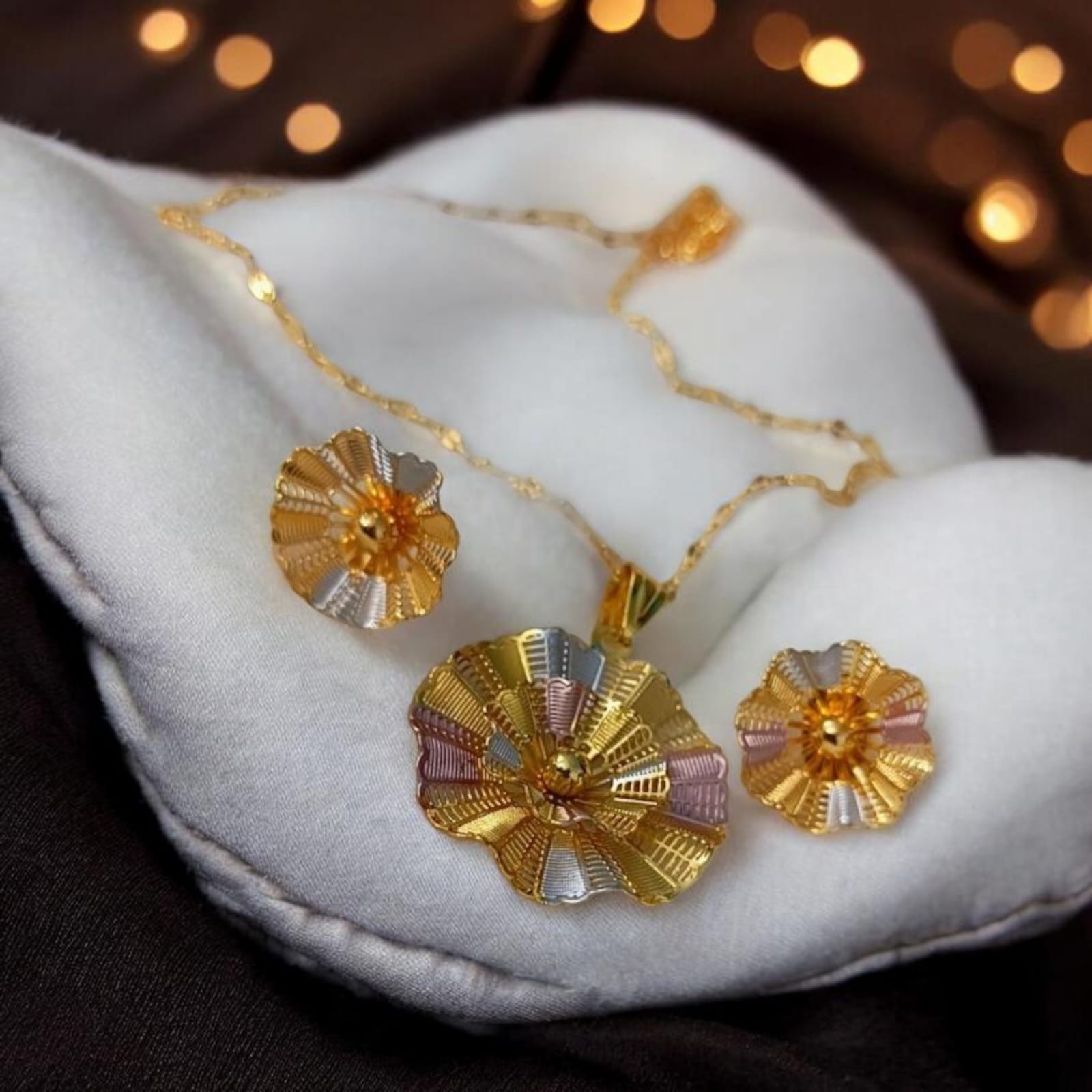 Be the first to review “Luxury Gold Plated Flower Pendant Set with Chain & Earrings for Women” Cancel reply